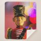Navidades soldado de juguete figurina SlipperyJoe orgullo gay regalos LGBTQIA coloridas luces de bokeh fondo vibrante chaqueta roja uniforme de oro botones de hombro peatones caricatura rostro artístico gorra negro oro emblema rosa púrpura amarillo ambiente festivo