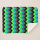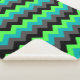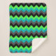 Una pequeña manta sherpa con un elegante diseño de patrón de chevrons multicolores en negro, gris, verde y turquesa.