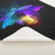 Luciérnagas mecánicas antiguas con bombilla de luz y finas alas brillan naranja, violeta, turquesa sobre fondo negro. Estilo Steampunk.