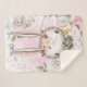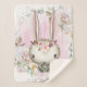 Chica conejita manta de bebé con adorable conejo de conejo de bebé con flores de bonito en su cabello sobre un hermoso fondo de flores de acuarela vintage. Esta linda manta de bebé de conejito sherpa se personaliza fácilmente con el nombre del bebé, o cualquier otro texto.