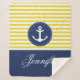 Diseño del amarillo y de los azules marinos con el ancla. Esta manta preciosa del sherpa también tiene área de texto adaptable. ¡Escriba allí su nombre, o nombre del amigo, o cualquier texto que usted quiera! ¡Tenga modificar para requisitos particulares de la diversión!