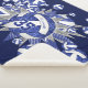 Esta manta de voleibol con la temática de chica, Sherpa fleece una "explosión" de bolas de voleibol azules y blancas de diferentes tamaños y de estrellas azules y grises y puntos de polka blancos sobre la estrella azul, todo sobre un fondo azul personalizable más oscuro - los paneles azules de las bolas de voleibol se mezclan con un patrón corpulento y floral - personalizar con el nombre del jugador y número jersey - katz_d zynes