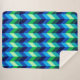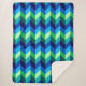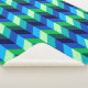Una manta de sherpa de gran tamaño con un diseño colorido y sombrío de los chevrones en verde lima, azul turquesa real, azul océano y azul cielo.