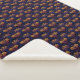 El producto presenta una estampación repetitiva inspirada en un diseño clásico de estilo barroco. El motivo central se asemeja a un estilizado fleur-de-lis o a un elegante plume, representado en tonos dorados, rojos y naranjas vibrantes con efectos de gradiente. El fondo es un azul marino profundo, creando un contraste rico que hace que los elementos de diseño aparezcan. El patrón tiene un toque lujoso y regal, con curvas simétricas y fluidas que le dan un aspecto sofisticado y atemporal.