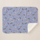 Aquí hay una blanda y esponjosa manta con mis ilustraciones de diferentes colores australianos en juego. Mezcladas con los perros, hay frisbeas y pelotas de tenis, lo que hace de esto un divertido patrón contra un azul claro y morado. Esta es una gran manta para los pastores australianos y amantes del perro.