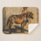 Este diseño presenta un cuadro del artista austriaco August von Pettenkofen (1822-1889). Muestra a un pastor tradicional parado al lado de un pequeño caballo marrón. El caballo está tranquilo y relajado al lado del humano. La escena vintage es un bello ejemplo de arte animal.