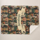 Cuidada manta personalizada de sherpa para niños con ilustraciones mágicos de pequeñas cabañas encaramadas sobre hongos rojos y melocotones, y rodeadas de mariposas, flores y vegetación.