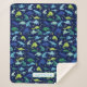 Los niños Dinosaurios Personalizados Chinos Púrpura Azul Color Azul Color Verde Patrón Sherpa. Patrón de dinosaurios divertidos en azul acuarela y verde sobre fondo azul oscuro.www.SamAnnDesigns.com