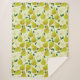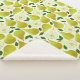 Patrón de peras verdes vibrantes en tonos amarillos y verdes con hojas verdes brillantes. Algunas de las peras se han reducido a la mitad para mostrar los jugosos interiores y semillas.