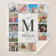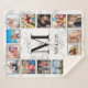 Crea tu propia manta personalizada de 12 fotos de collage con tus imágenes personalizados, monograma y nombre sobre un elegante fondo de mármol blanco.