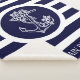 Elegantes franjas azules y blancas con nombre de personalizable anclado en barco floral náutico.