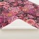 Rosas rojas vibrantes y pájaros patrón sobre un fondo negro.