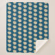 Esta manta presenta un patrón de conchas amarillas de almejas en un fondo azul oscuro. Ideal para tu casa de playa o para traer aire fresco al mar a tu casa. Obra de arte original de Wave World Gifts