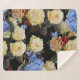 Manta Sherpa Patrón floral moderno, rosas blancas, hidrangea az
