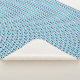 Esta colorida manta sherpa presenta un lindo patrón geométrico con triángulos blancos, grises y azules.