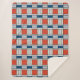 Esta manta sherpa presenta un patrón geométrico retro en rojo, azul y gris claro.