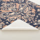Patrón simétrico sin foco en el estilo Damasco. Salto de arenas, adorno de plantas en tonos beige sobre un fondo azul oscuro.