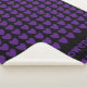 ¡Una manta de sherpa acogedora personalizada con tu nombre! Fondo negro con patrón de corazones púrpura.