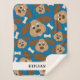 Esta manta azul para bebés muestra un collage de un perro sonriente con grandes orejas y huesos de perro en un fondo azul oscuro. Personalice esta manta adorable con el nombre de su hijo.