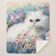 Manta Sherpa Persian Cat Blue Eyes in Pink Flowers Personalized