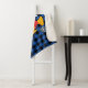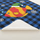 Ilustracion de un pez naranja tropical amarillo navidad bajo el océano con burbujas en un fondo de patrón búfalo de cuadros negros azules. Este bonito diseño de personalizado es un regalo para los amantes de la navidad, la pesca y el buceo.