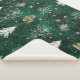 Un diseño elegante con pinos dorados, copos de nieve plateados y ramas sobre un fondo verde cazador.