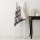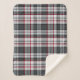 Funda tartán de textura gris con rayas finas rojas y azules.
