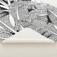 Plantas exóticas en blanco y negro y ilustracion botánico de palmeras. Patrón de árboles plátanos sin soldadura. Página del libro de zentangle sobre plantas tropicales y árboles adultos colorantes.