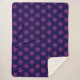 Diseño geométrico en tonos violetas y rojos con elementos de vidrio manchado.