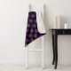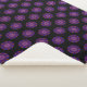 Diseño geométrico en tonos violetas y rojos con elementos de vidrio manchado.