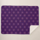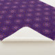 Diseño geométrico en tonos violetas y rojos con elementos de vidrio manchado.