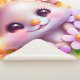 Ratón rosa Kawaii lindo, este diseño presenta ratón rosa kawaii agudo con flores de lavanda.