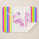 Cubierta acuática personalizada de la cabeza de unicornio sobre un fondo gráfico de rayas rosadas. Personalizar con su propia elección de nombre y apellidos u otros detalles. Original acuarela mítica unicornio morado y rosa arte y diseño de Sarah Trett para www.mylittleeden.com en Zazzle.