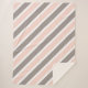 La moderna manta de sherpa para chicas dormitorio tiene un patrón diagonal rayado en rosa, gris y blanco.