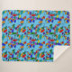 Coloridos círculos abstractos sherpa faja manta. El color de fondo es azul intenso.