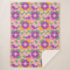 Composición vívida con arreglo simétrico de formas geométricas moradas, amarillas, naranjas y azules. Expresa elementos de diseño moderno y transmite un sentido de equilibrio y creatividad con su patrón dinámico.