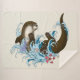 Una linda nutria marrón del río jugando en el agua con flores en el fondo de color crema