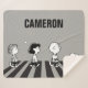 Esta obra de arte de Peanuts incluye a Snoopy tomando una siesta creada en un estilo de diseño de música rock.