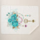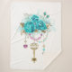 Llave de oro antiguo con rosas turquesa de moda decorados con hojas de oro blanco y cuentas rosas y azules. Color de moda. Rosas turquesas. Oro blanco. Tifanía azul.