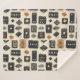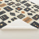 Earthy geometric pattern blanket inspired by tribal mudcloth textiles, featuring hand-painted rectangles, diamonds, and triangles in charcoal black and terracotta on a textured beige background. A warm boho design ideal for rustic décor lovers, artisan style fans, and anyone drawn to earthy geometric aesthetics.