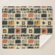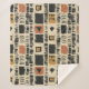 Earthy geometric pattern blanket inspired by tribal mudcloth textiles, featuring hand-painted rectangles, diamonds, and triangles in charcoal black and terracotta on a textured beige background. A warm boho design ideal for rustic décor lovers, artisan style fans, and anyone drawn to earthy geometric aesthetics.