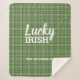 Decore su casa para marzo con este rústico Sherpa Blanket con el nombre de familia Green Plaid St Patrick. Es una casa de campo rústica diseñada con un fondo de manta verde y la graciosa cita "irlandés afortunado" en letras de caligrafía blanca en el centro. El apellido de la familia está en el centro inferior. Puede elegir el texto de su personalizado o eliminarlo si lo desea. Haga clic en la opción personalizar más e introduzca el nombre, el texto personalizado o la eliminación.