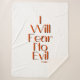 Esta manta muestra la escritura de verso de la biblia Salmos 23:4 KJV "I Will Fear No Evil" en una letra impresa única con letras naranjas, contorno negro más citación de la biblia. Esta manta presenta una imagen vívida en un lado y el Sherpa más suave disponible en el reverso hecho de poliéster 100% y mink impreso con soporte de sherpa ultra suave.