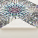 Diseño Kaleidoscope con trazos complejos en una mezcla de textura y líneas rectas con muchos colores gradientes iluminados por un gris mate que creó un efecto que se asemeja a la plata o la perla, sin perder el efecto del relieve suave de la textura tallada y arenosa.
