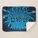 Texto oscuro que dice "Shalom" (ש ל ו ם - "paz" hebrea) superpuesto sobre una imagen fractal azul más clara. Añade tu propio texto adicional.