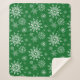 Esta cálida y acogedora manta Sherpa se muestra en una estampada de copos de nieve en invierno. Color Jade Green Personalizar esta manta o compra como se muestra.
