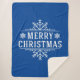 Esta cálida y acogedora manta Sherpa se muestra con una gran estampada de copos de nieve de Feliz Navidad en blanco congelado sobre un color de fondo azul zafiro. Personalizar esta manta o compra como está. Imagen de archivo freepik.com all-free-download.com