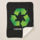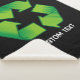 Símbolo de reciclaje con sombra de carpintería sobre fondo negro. Texto personalizado.