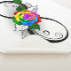 símbolo infinito con rosa arcoiris sobre fondo blanco.