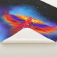 Fiery phoenix sobrevolando el espacio en una nube nebulosa azul y púrpura en un cielo estrellado por la noche. Un brillante grupo de estrellas forma la constelación fénix. Orientación horizontal. ♡ Idyllfire